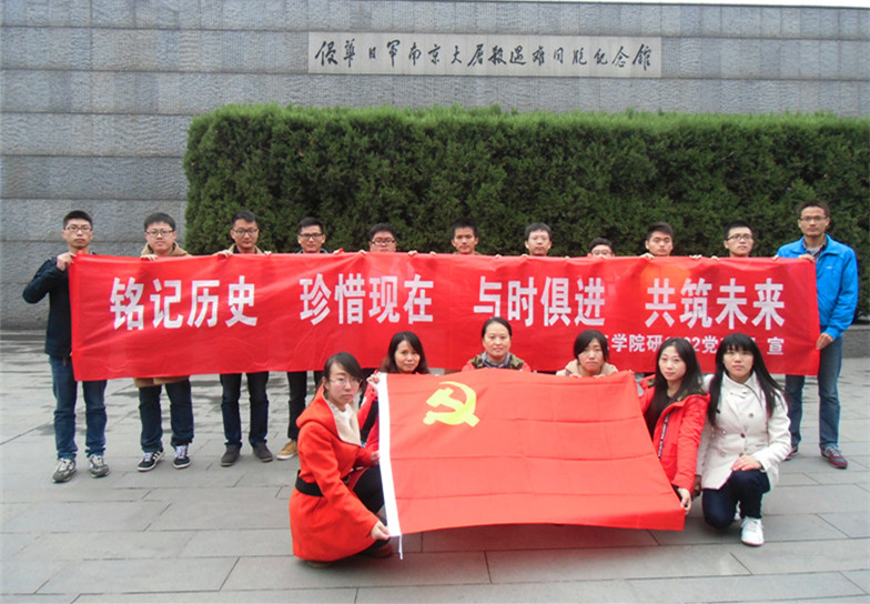 两个支部组织了全体正式党员、预备党员和积极分子到侵华日军南京大屠杀遇难同胞纪念馆、雨花台烈士陵园进行参观,以此来铭记历史,缅怀先烈,纪念中国人民抗日战争暨世界反法西斯战争胜利70周年。在参观侵华日军南京大屠杀遇难同胞纪念馆的过程中,他们从残酷罪行的“万人坑”,走到冷静反思的黑暗“冥思堂”,最后通往光明的“和平广场”,每个人都有深刻的感触和反思。而在参观雨花台时,看到由179块花岗石组成的烈士群雕时像是聆听着他们的故事,感怀着他们行为伟大和壮烈,一种深深的崇敬之情油然而生,是烈士们用自己的血肉,为我们党和人民今天幸福生活的实现铺平了道路。