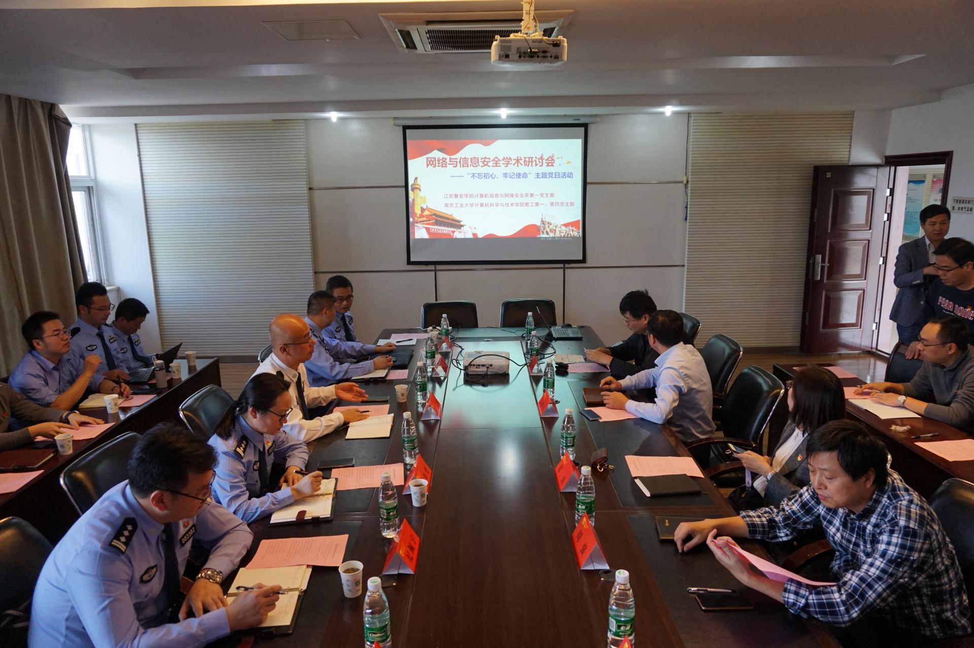 10月23日下午,计算机科学与技术学院教工第一、第四党支部与江苏警官学院计算机信息与网络安全系第一党支部在机电A楼604会议室,共同开展“网络与信息安全学术研讨”为主题的党日活动,这次活动是两校党支部开展支部共建工作的积极实践。江苏警官学院信息与网络安全系党总支、计算机科学与技术学院党委的部分班子成员,共建党支部的教工党员代表参加了活动。