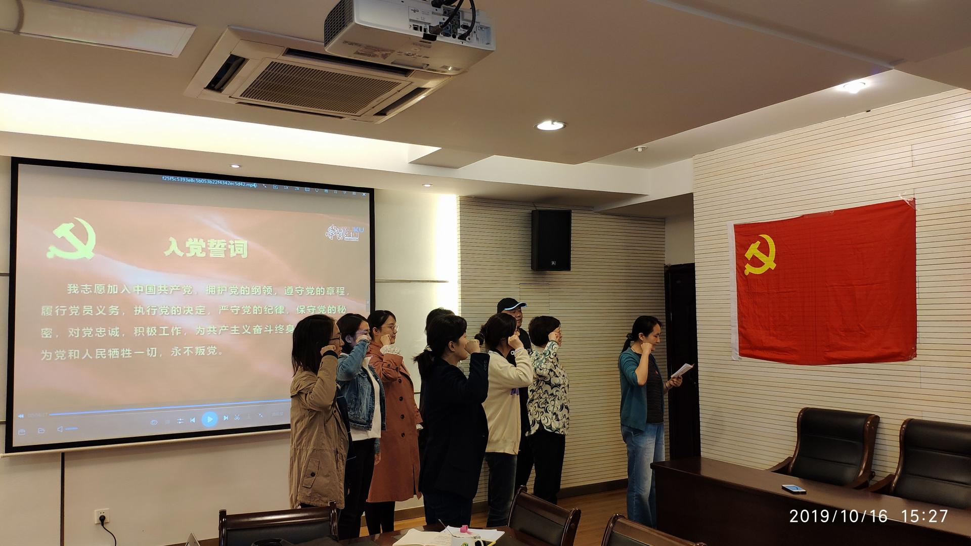 活动中,党支部书记蒋皎梅老师带领全体党员学习了《习近平新时代中国特色社会主义思想学习纲要》,观看视频《忠诚》《孤岛32年》以及赵亚夫事迹报道片,党员们接受了一次心灵的洗礼。随后,党支部全体党员进行重读入党志愿、重忆入党经历、重问入党初心,大家结合自己学习和工作经历,谈初心、话使命、谈奋斗,各抒己见,气氛热烈。最后,在“学习强国”原创微视频《我宣誓》的感召下,党支部全体党员举起右拳,面对党旗庄严宣誓,一起重温入党誓词,坚定信念,不忘初心。