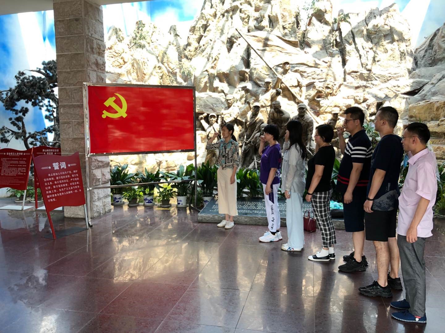 8月初,在药学院党委书记何冰芳带领下,药学院教职工第三支部成员前往句容茅山新四军纪念馆参观学习。全体党员在支部书记的带领下面对鲜红的党旗重温了入党誓词,随后陆续参观了抗战纪念馆和廉政建设史实馆。纪念馆展出了二千多件珍贵文物和历史资料,真实地反映了以茅山为中心苏南抗日根据地的光辉历程,生动地再现了新四军和苏南人民抗日斗争的历史风貌。