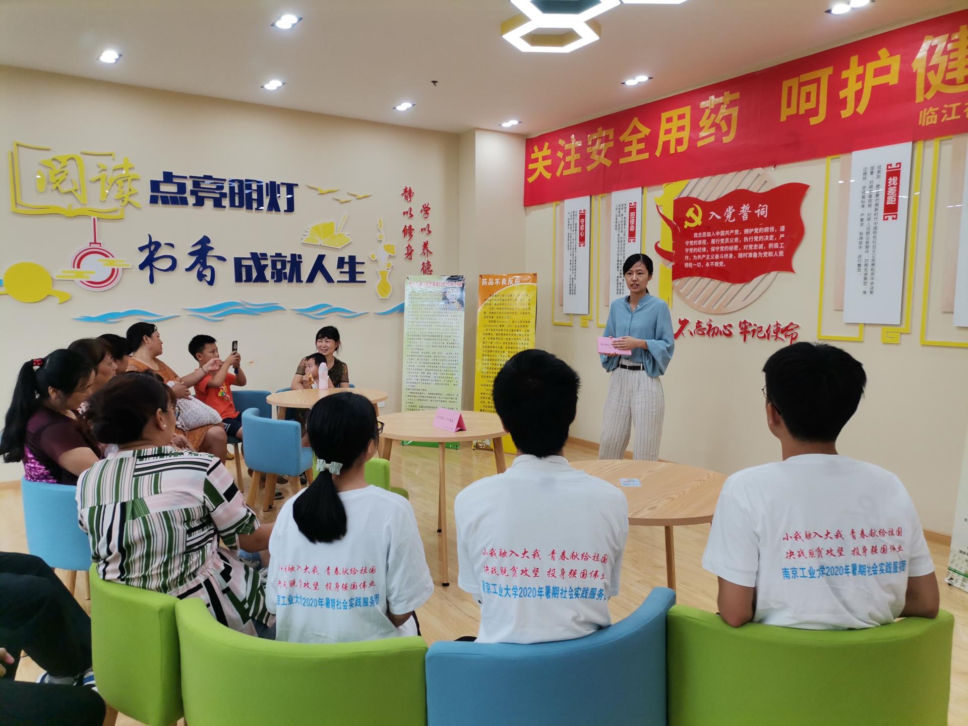8月中旬,教工第三党支部携手“药”你健康实践小分队走进南京临江社区党群服务中心,开展了“关注安全用药、呵护健康生活”主题党日活动。药学院党委副书记刘哲、江北新区顶山街道临江社区主任、党支部副书记杨勇明等一起参加了活动。主题党日活动以讲座、展板、发放宣传资料、现场咨询等形式宣传安全用药的科学理念和实用知识,吸引了众多居民前来参加。