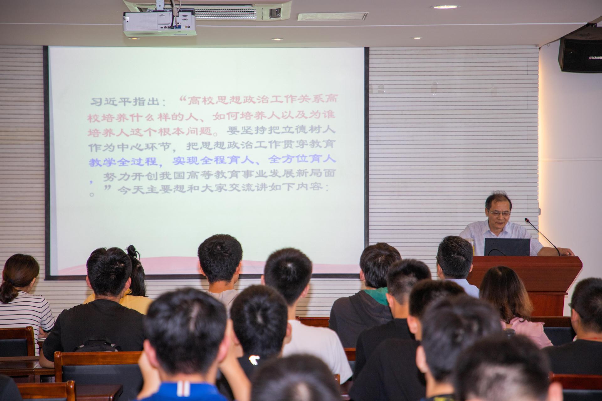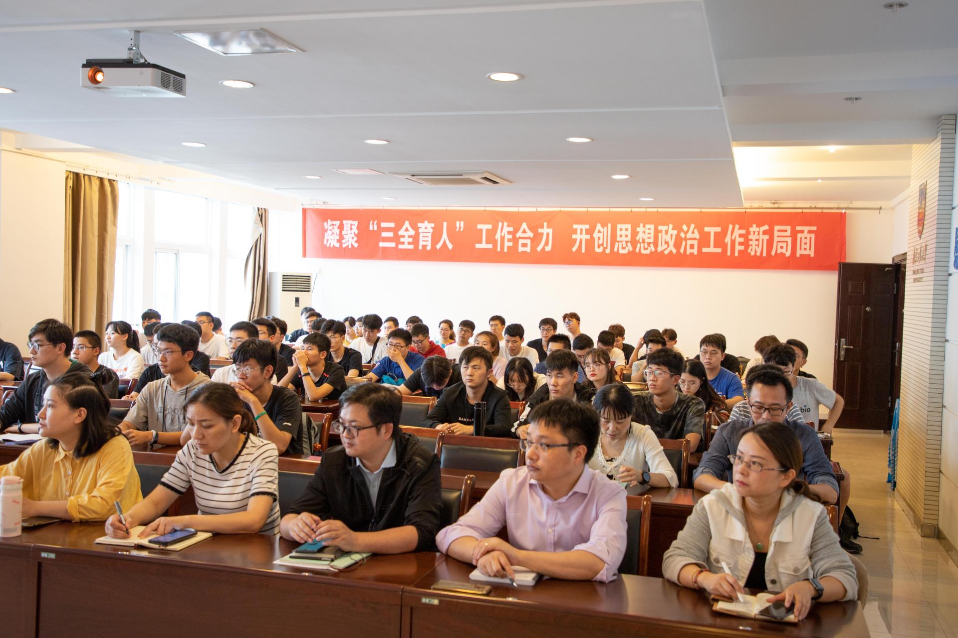 会上,陈书记给大家做了《高校思想政治教育工作实践与思考》的精彩报告,首先他阐述了新中国70年党的思想政治教育发展历程、实践成就和发展经验,重点强调了习近平总书记关于大学生思想政治教育论述理论蕴涵,让与会人员从宏观层面对思想政治工作的定位、意义、作用有了更深层的了解。同时,他结合多年党建与思想政治工作经验,围绕“三全育人”综合改革以及“十大育人体系”中的育人元素、育人规律,育人逻辑等方面,传授了丰富的党建与思想政治工作基本技巧和工作技能,让在场师生在认识上有新的提升,在实务有新的收获,大家纷纷表示要把学院“三全育人”综合改革落到实处,积极为学院思想政治教育工作贡献自已的力量。(作者:彭蕾;单位:电气工程与控制科学学院党委;审核:黄锁明)