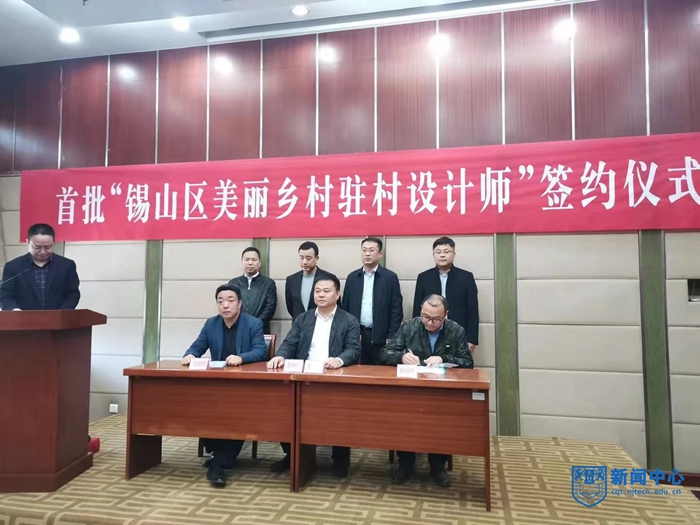艺术设计学院教工第二党支部党员高涛老师带领党员师生设计团队应邀来到无锡市锡山区,出席首批美丽乡村驻村设计师签约仪式,与该区东港镇、鹅湖镇签订驻村设计师聘用合同,以此作为庆祝中国共产党成立100周年开展的“献礼建党百年”服务百个乡村行系列活动的重要环节。迄今为止,该设计团队已经服务了南京六合、溧水、浦口及无锡锡山等地区的80多个美丽乡村建设,完成横向科研到款600多万元。