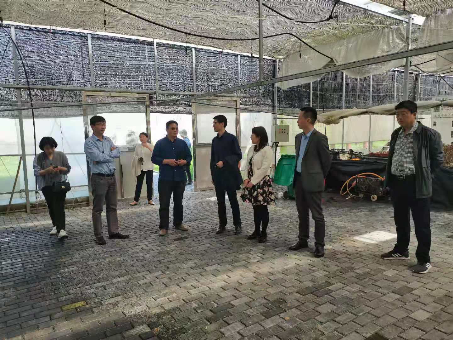 在挂牌仪式之前,潘运军一行参观了公司食用菌、蔬菜、中药材、花卉等生态农产品的种植示范区,听取了企业负责人关于韩国志教授与公司的合作项目——光谱可调遮阳网的介绍。(作者:何广科;单位:化学与分子工程学院党委;审核:潘运军)