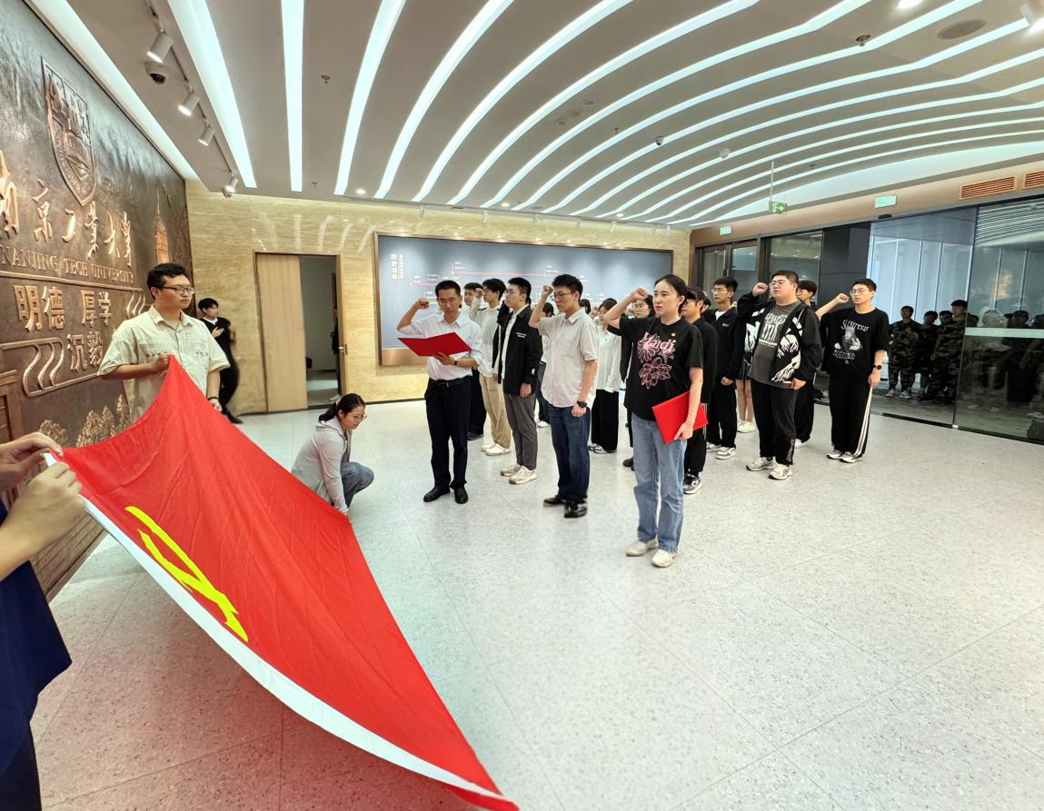 宣誓仪式在《国际歌》声中拉开帷幕。学院专职辅导员唐为芷宣读新党员名单,伴随着热烈掌声,与会正式党员为新党员们佩戴党徽。随后,季青春带领全体预备党员面向党旗,高举右拳庄严宣誓。宣誓完毕后,季青春勉励大家要坚定理想信念、不断加强理论学习,牢记党员身份,把青春奋斗融入国家和民族的发展大局,在科研和实践中发挥先锋模范作用。