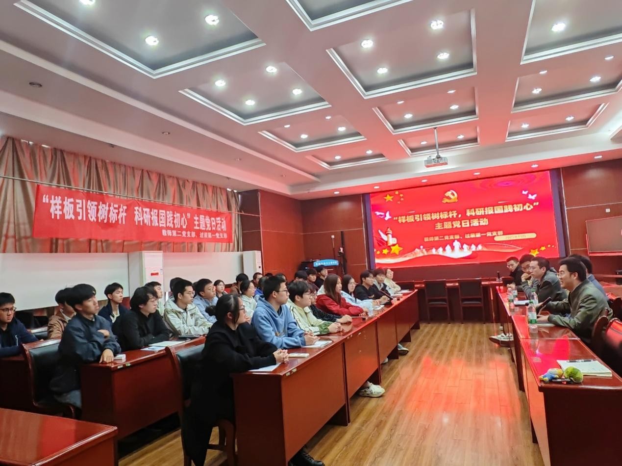 2025年11月12日,机械与动力工程学院教师第二党支部与过装专业第一党支部在崇德E楼报告厅联合举办“样板引领树标杆,科研报国践初心”师生共建主题党日活动。教师第二党支部、过装第一党支部的全体党员代表,以及学生党支部的入党积极分子和拟发展对象共同参加了本次活动。