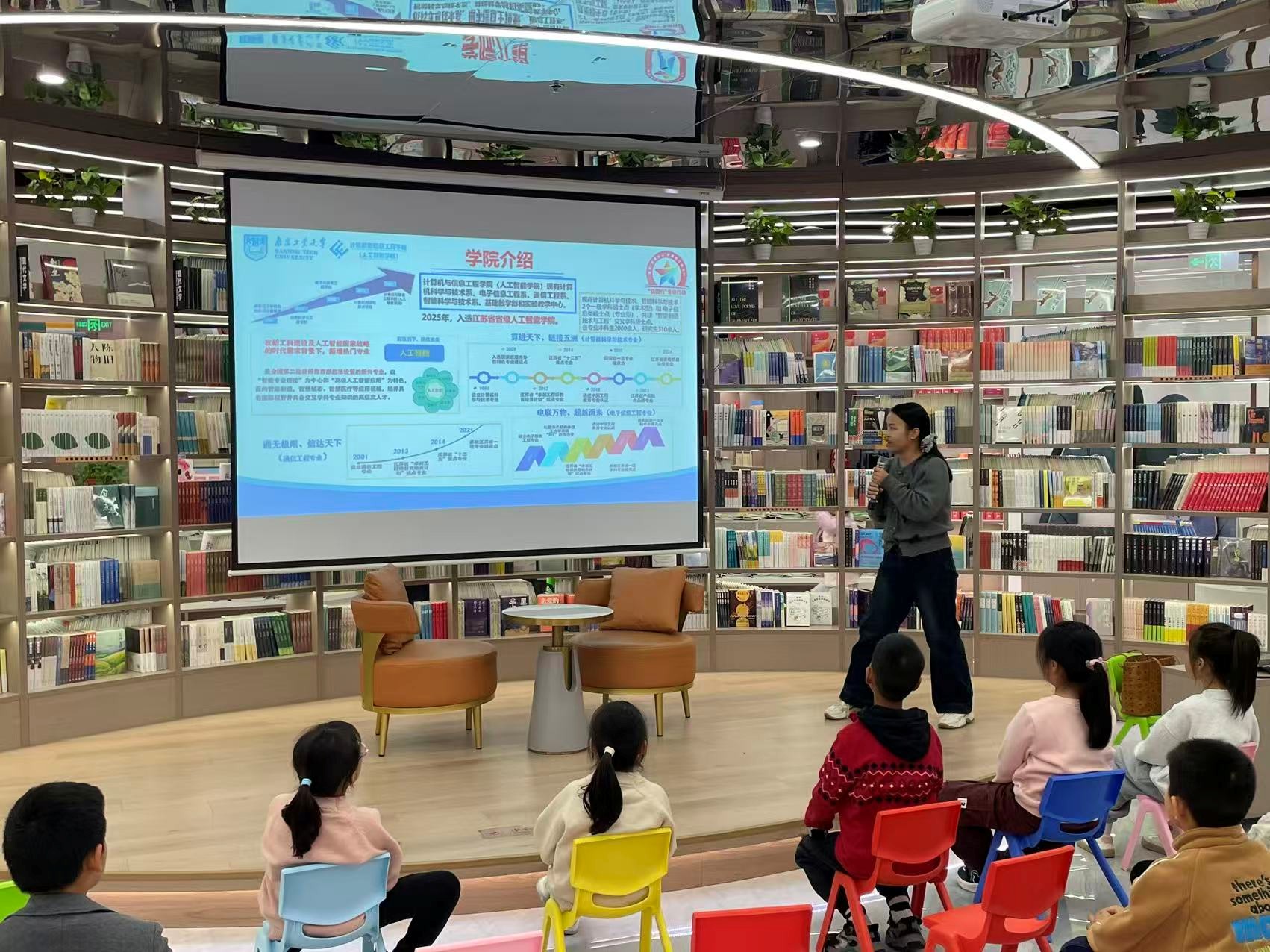 为普及人工智能前沿知识,激发青少年科学探索精神,近日,计算机与信息工程学院(人工智能学院)教师第二党支部联合教师第五党支部,与江苏凤凰书店集团有限公司浦口分公司党支部共同在浦口新华书店白马生活广场店举办一场题为《未来世界大冒险——AI带我飞向明天》的科普讲座。活动由学院教师第二党支部蓝君老师主讲,面向8-12岁中小学生开展人工智能启蒙教育。