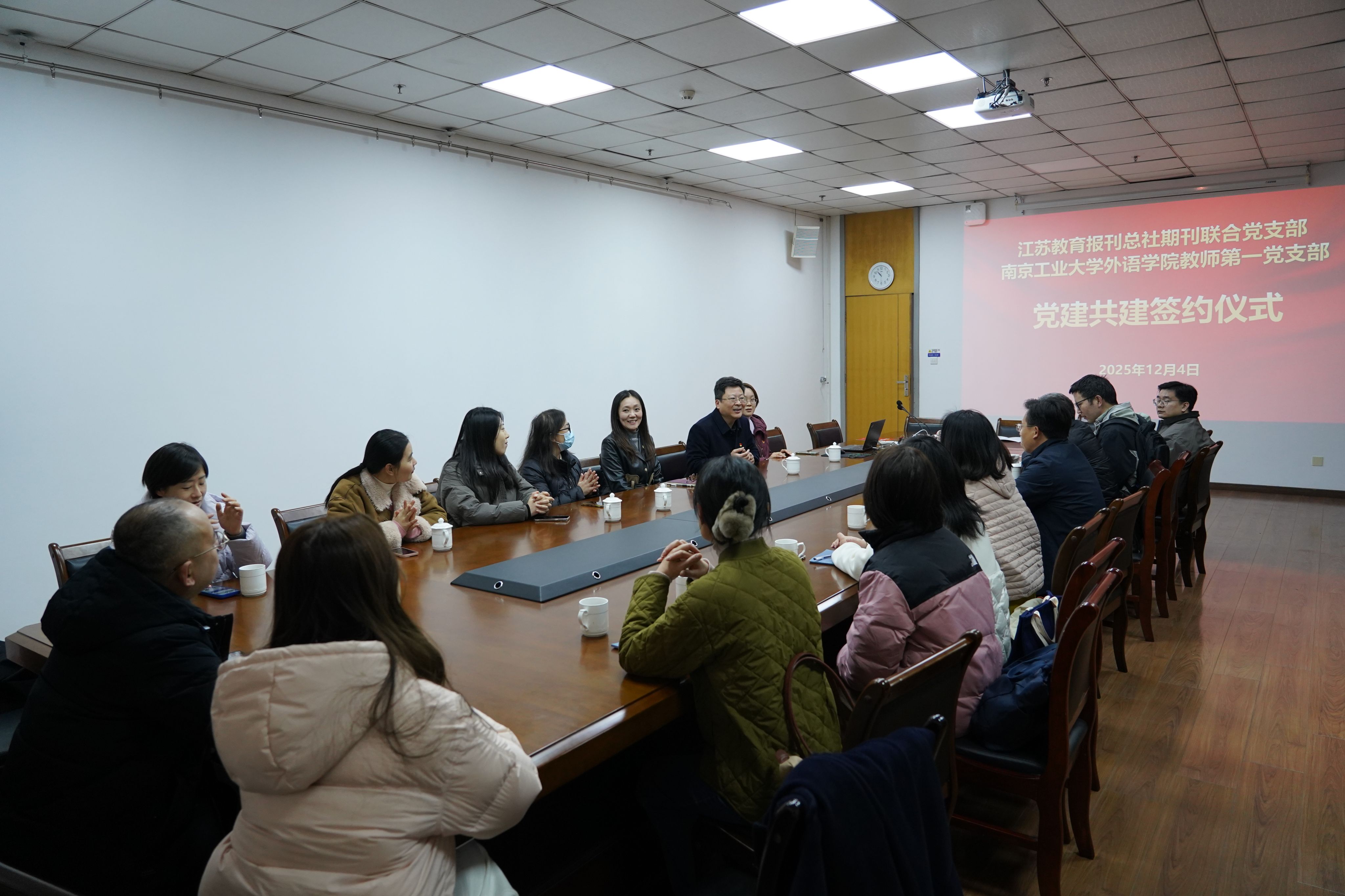 2025年12月4日,外国语言文学学院教师第一党支部与江苏教育报刊总社期刊联合党支部开展党建共建活动,江苏教育报刊总社期刊联合党支部书记孙士海等参加活动,活动由外国语言文学学院党委书记张翔主持。