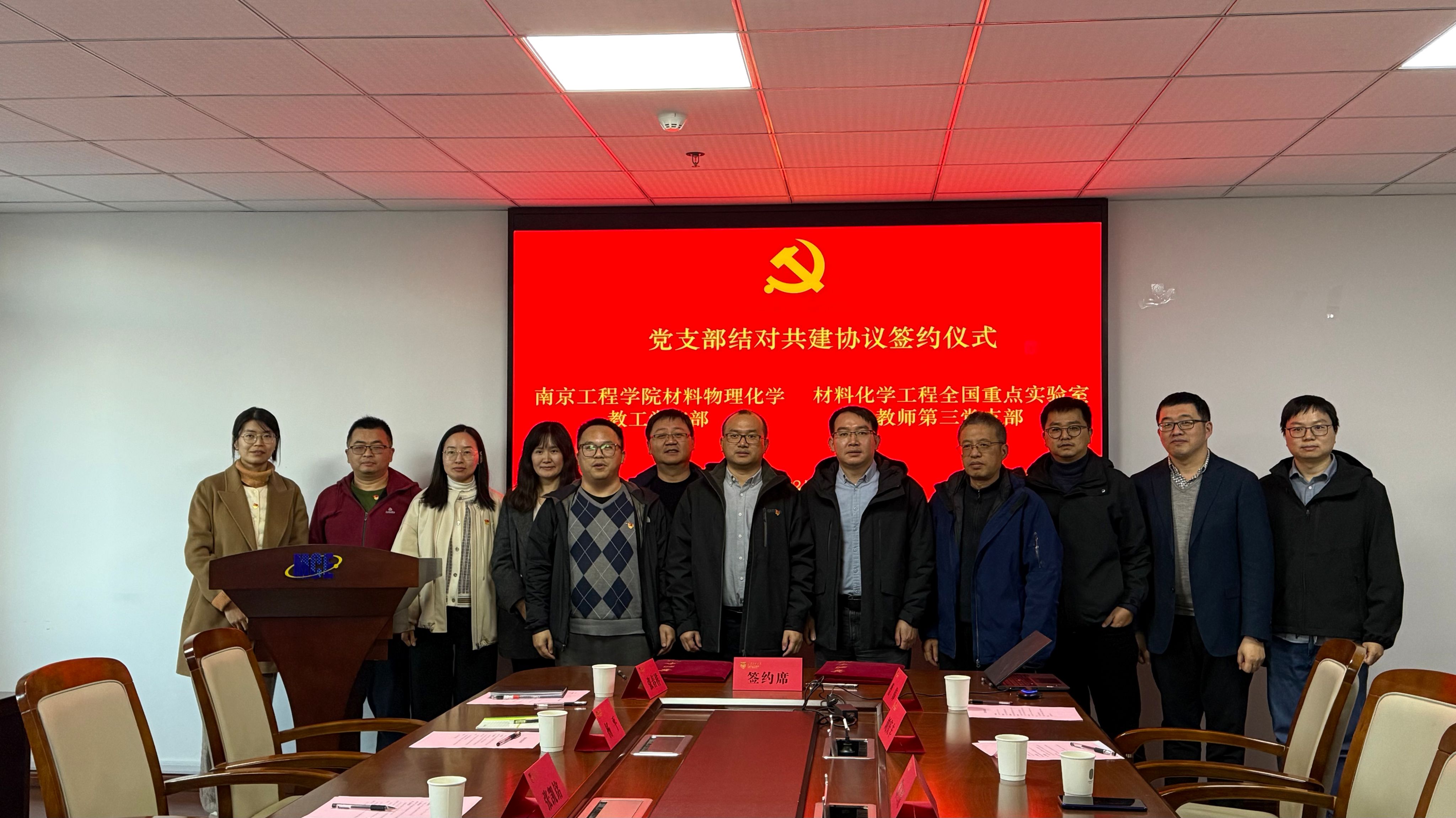 2025年12月9日下午,材料化学工程全国重点实验室教师第三党支部联合南京工程学院材料科学与工程学院材料物理化学教工党支部开展党建共建活动,以党建引领共话材料科学领域前沿发展,助力高水平科技自立自强。南京工程学院材料科学与工程学院党委委员、高分子系主任杭祖圣,材料物理化学教工党支部书记张凯铭,材料化学工程全国重点实验室材料测试中心主任王重庆,教师第三党支部书记郑旦庆及双方党员代表参加活动。会议由郑旦庆主持。